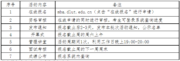 1、考生登陆大连理工大学专业学位教育中心网站,点击“在线报名”进行注册申请并查看进度。网址:https://mba.dlut.edu.cn/。